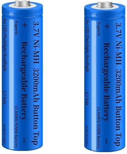 2 Pack 3200mAh Battery Ni-MH Rechargeable, 3.7V Button Top NiMH Batteries, High Capacity 3.7Volt Battery for LED Flashlight,Headlamp,Remote Control,RC Car,Mini Fans,etc, with Storage Box, Blue