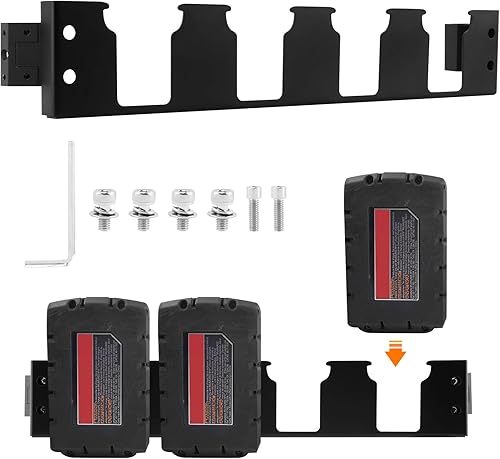 4 Slots Battery Holder Compatible with Milwauke-e M18 Battery, Effortless Side Storage Solution Fit for Milwauke-e Packout System,Corner Rail Clips & Screws Including(Color:Black)