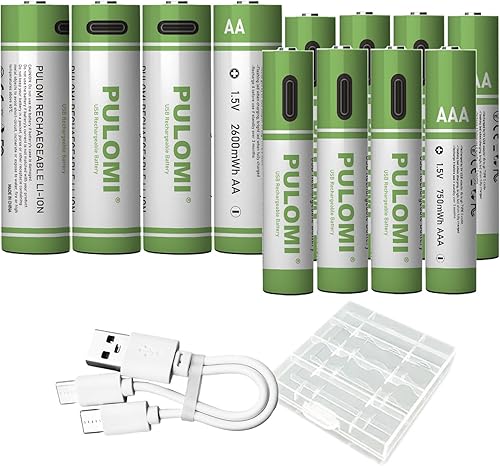 PULOMI 16pcs AA Battery Rechargeable Batteries, High Capacity 1.5V 2400mAh 3600mWh Fast Charge, 2000+ Cycle with Type-C Port Cable Constant Output, Fast Charger Box is Included
