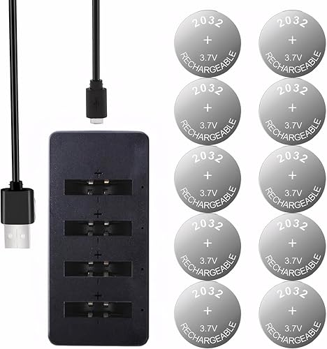Lithium CR2032 Batteries 45mAh 10-Pack with Charger Rechargeable Button Lir2032 Battery,2032 Battery for Apple AirTag Watches, Key Fobs