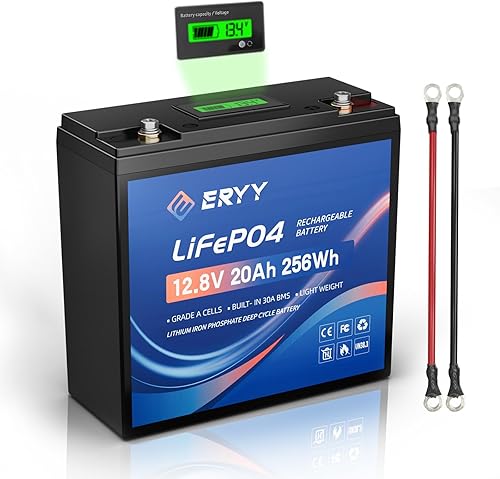 12V LiFePO4 Lithium Battery 20AH 256Wh, Built-in 30A BMS & LCD Voltmeter, 5000+ Deep Cycles Lightweight Rechargeable Lithium Iron Phosphate Battery for Fish Finder, Camping Lights, Solar Panel