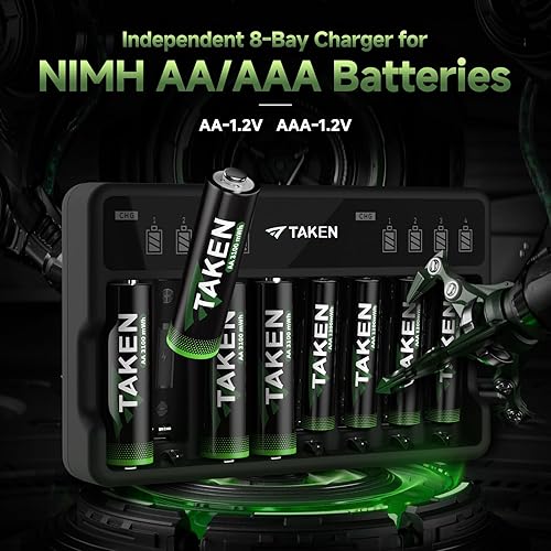 Taken AA AAA Battery Charger, 8 Bay Smart Battery Charger for Fast Charging Ni-MH Ni-CD Rechargeable Batteries (Type-C Cable Included)