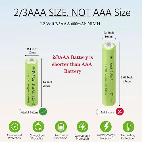 Ni-MH 2/3AAA 600mAh 1.2V Rechargeable Batteries for Solar Lights, 4 Pack 2/3 AAA Size Battery (Shorter Than AAA)