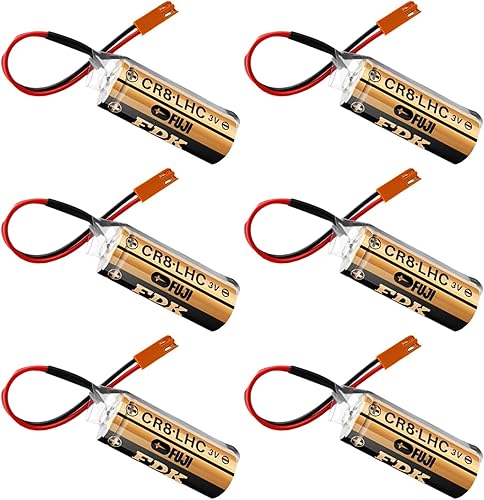 ◢(6-Pack) 3V 2600mAh CR8.LHC 17450 Lithium Battery for Memory Backup Power Source Water Meter for Fuji FDK CR8.LHC Battery with Brown Plug