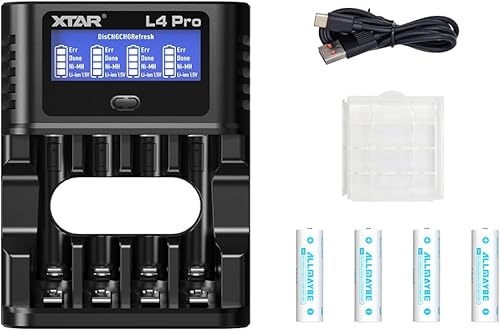 XTAR L4 Pro AA AAA Charger with 4 AA 3000mwh Rechargeable AA Batteries