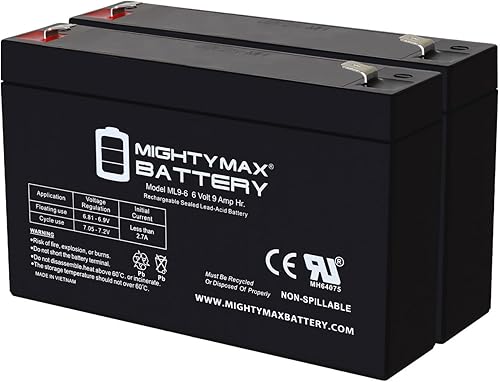 Mighty Max Battery 6V, 9Ah, AGM, F2 Terminal, Replacement Battery Compatible with B&B BP7-6 - 2 Pack
