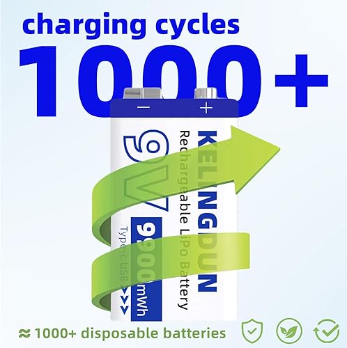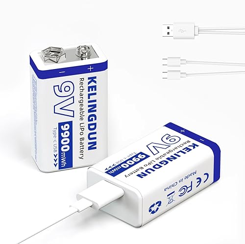 Rechargeable 9V Lithium Batteries,9900mWh USB 9 Volt Li-ion Batteries Long-Lasting(2 Pack)