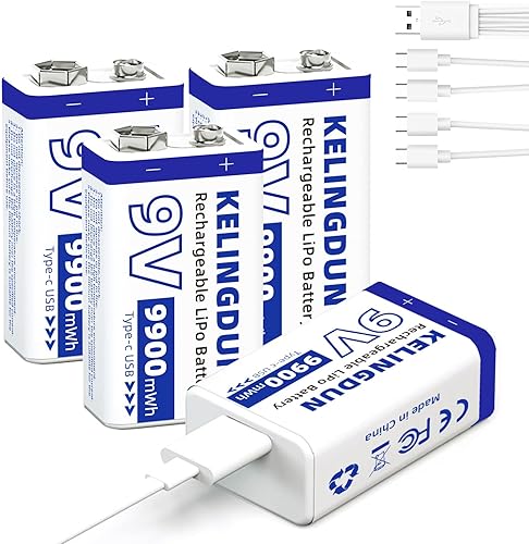 4 Pack-Rechargeable 9V Lithium Batteries,9900mWh USB 9 Volt Li-ion Batteries Long-Lasting