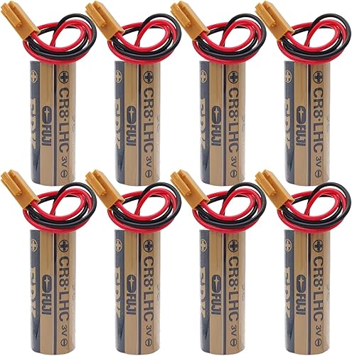 (8 Counts) CR8. LHC 3V 2600mAh PLC Non-Rechargeable Lithium Battery for Fuji fdk cr8-lhc PLC Controller Backup Battery with Brown Plug