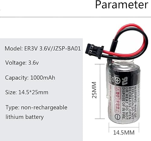 ◢(5-Pack) ER3V/3.6V JZSP-BA01 3.6V 1000mAh Battery Non-Rechargeable PLC Lithium Battery for CNC System with Black Plug
