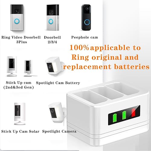 3-Slot Ring Battery Charging Station/Battery Charger/Charging case,with LED Display, Type-C Input,Compatible with Ring Doorbell 2/3/4/3 Plus/Spotlight Cam/Peephole Cam and Cameras Battery