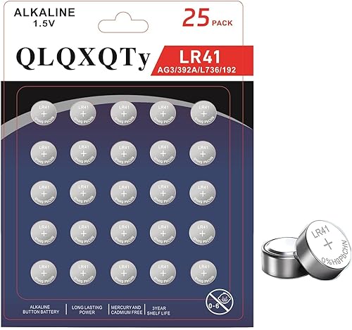 25PACK LR41 Alkaline Button Cell Batteries, 1.5V, AG3/392A/L736/192 Compatible