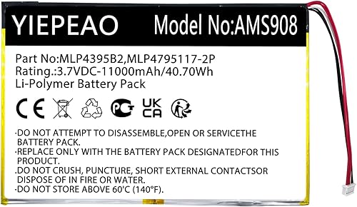 Replacement Battery for Aute'l MaxiSys MS908,MaxiSys MS908P Pro,MaxiSys CV,MS908CV,MaxiSys Pro,MS908S,MaxiSys MS908P,MaxiSys MS908 Pro,MaxiSys MY908, MLP4395B2,MLP4795117-2P,11000mAh