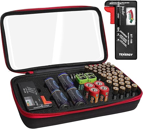 Battery Organizer Storage Box with Tester, Waterproof Organiser,Transparent Lid Holds Multiple Batteries, Portable Battery Organiser for Home, Travel and Gifting