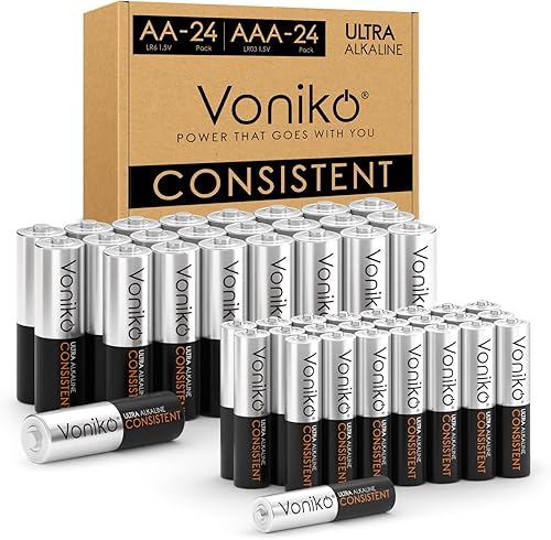 Voniko AA and AAA Batteries 48 Count Combo Pack, 24 Double A and 24 Triple A Batteries, 1.5V Premium Alkaline Battery, 10-Year Shelf Life