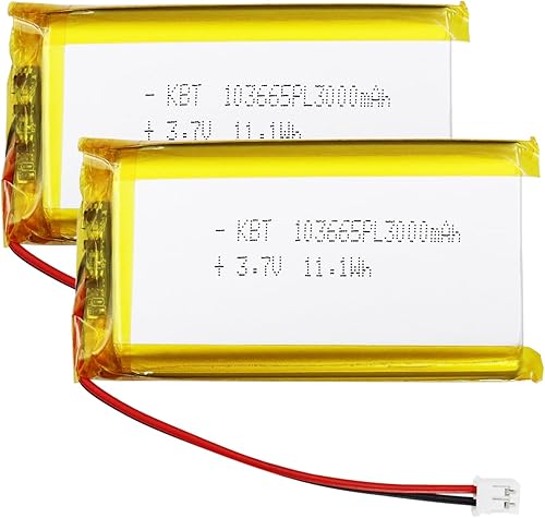 KBT 3.7V 3000mAh 103665 LiPo Battery with PH 2.0mm-2Pin JST Connector, 2Pack Rechargeable Lithium Polymer Battery for Smart Door Locks, Projectors, Drones, Emergency Lighting Equipment