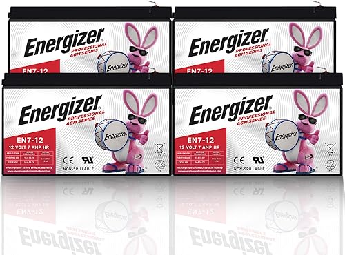 Energizer EN7-12 - 4 Pack - 12 Volt 7 Amp Hr, Long Lasting Sealed Lead Acid AGM Rechargeable Battery Ideal for Use in Home Alarm Systems, Backup Power, Scooters, and More