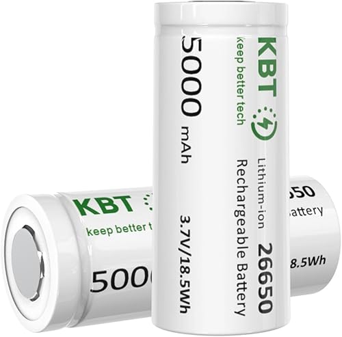 KBT 3.7V 5000mAh Battery High Capacity for Flashlight, Headlamp, LED Light, Toys, Bluetooth Speaker