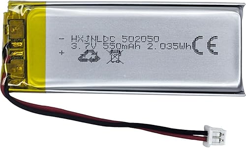 DC 3.7V 550mAh 502050 Rechargeable Lithium Polymer Battery, Suitable for DIY 3.7-5V Electronic Products with Built-in 2-Wire Battery Replacement and LED Lights