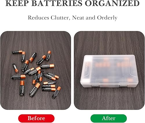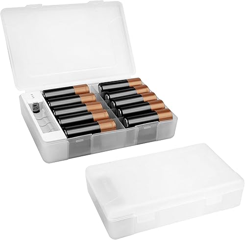 Linkidea 2 Pack Battery Organizer Case with Tester, Portable Holder for 20 AA and 22 AAA Cells, Durable Plastic Storage Box for Travel and Home Use, White