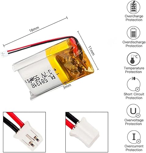3.7V 55mAh 501318 Lipo Battery Rechargeable Lithium Polymer ion Battery Pack with JST Connector 1pcs