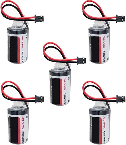 5PCS ER14250 3.6V 1200mAh 1/2AA Size Non-Rechargeable Disposable Lithium Battery with Black Plug Cell with Long-Lasting Power