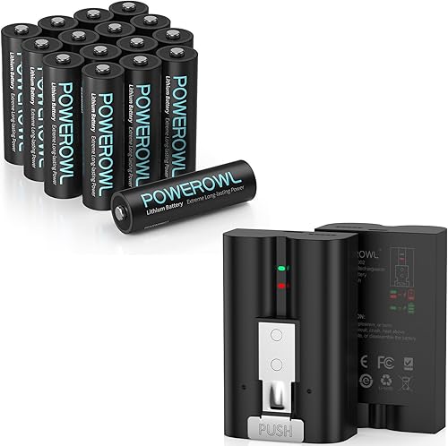 POWEROWL Lithium Batteries AA 16 Pack with 2 Pack for Ring Battery 6400mAh