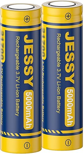 JESSY 3.7 Volt 21700 Rechargeable Battery 5000mAh Battery Flat Top 21700 Batteries for Flashlight Headlamp (2 Pack)