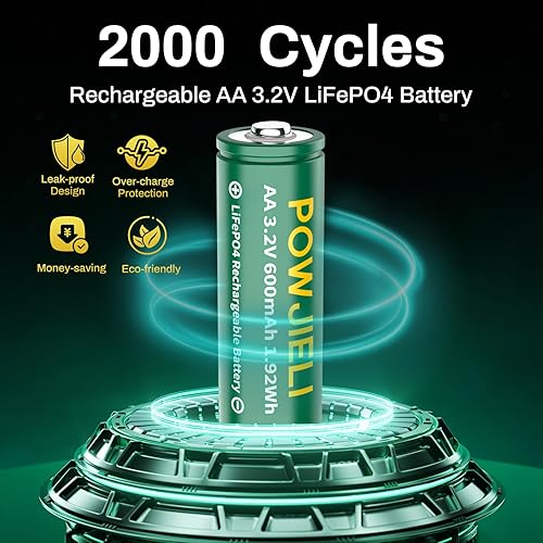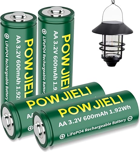 AA 3.2V Solar Batteries 4-Pack,600mAh LiFePo4 Double A Rechargeable Battery for Solar Post Lights, Wall Lanterns, Outdoor Lighting