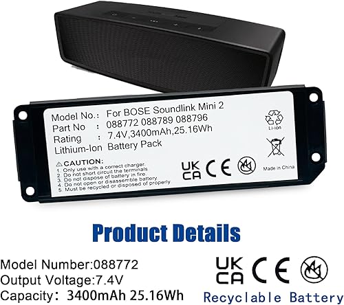 Replacement 3000mAh Li-ion Battery for Bose Soundlink Mini 2, Bose 088789, 088796, 088772, 080841