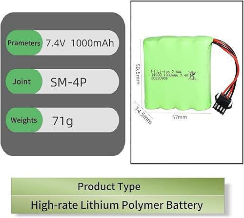 7.4V 1000mAh Rechargeable Li-ion Battery Pack with SM-4P Joint for Double Sided RC Stunt Car Small RC Boat Tumbling Amphibious RC Car RC Truck RC Toy SUV high Speed car
