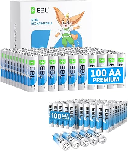 EBL AA Batteries 100 Pack with AAA Batteries 100 Pack 1.5V Batteries AA AAA Size Pack for Household and Business, Leakproof Alkaline Battery 10-Year Shelf Life