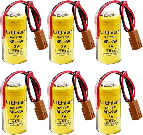 [6 Pack] 3v br-2/3a Lithium Battery br17335 for A98L-0031-0006 System Battery, Industrial Backup Batteries with Brown Plug, Non-Rechargeable