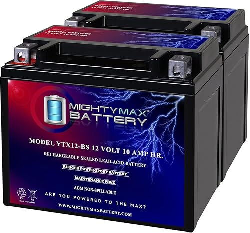 Mighty Max Battery YTX12-BS 12V, 10Ah, AGM, Replacement Battery Compatible with Honda 250 TRX250 TE, TM, FourTrax Recon 97-24 - 2 Pack