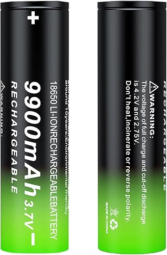 18650 Rechargeable Battery 3.7V Lithium Batteries 9900mAh Flat Top for Flashlights, Headlamp, Doorbells