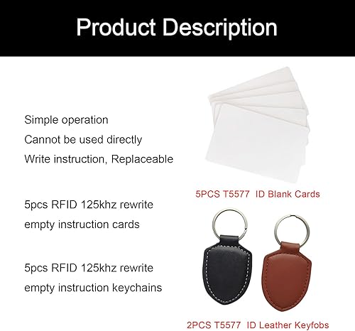 RFID Handheld 125khz Copier RFID Smart ID Card Duplicator Used for T5577 or EM4305+5pcs ID rewrite Cards +ID Leather 2pcs Keychains