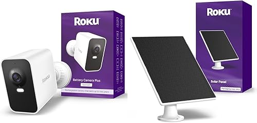Roku Battery Camera Plus 1080p HD Weather-Resistant Security Camera with 4X Battery & Solar Panel USB-C 2025 Charging Kit with 360° Mount