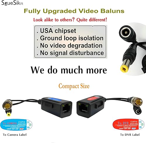 8 Pair Passive Video Balun and 2 Pack 10ft DC Power Extension Cords Bundle