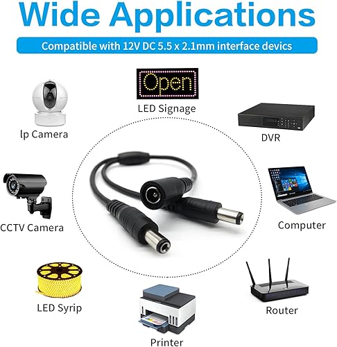 2 Way DC Power Supply Splitter for Security Cameras 1 Female to 2 Male 5.5 * 2.1mm 2 Channel Y Adapter for CCTV Surveillance Cameras LED Light, 2PCS