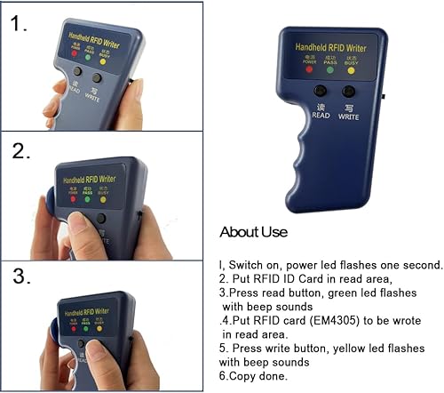 125Khz RFID Reader Writer: Handheld ID/HID RFID Writer with 10 Pcs 125Khz ID Cards and 10Pcs 125khz ID Key Fobs