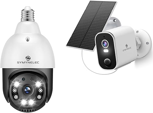 SYMYNELEC Solar Security Cameras Wireless Outdoor 2K + Light Bulb Security Camera Outdoor Waterproof 2.5K