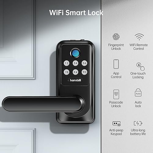 WiFi Smart Lock: Hornbill Keyless Entry Door Lock with Handle, APP Remote Keypad Fingerprint Code Unlock, Auto-Lock, Suitable for Home/Office/Rental/Hotel