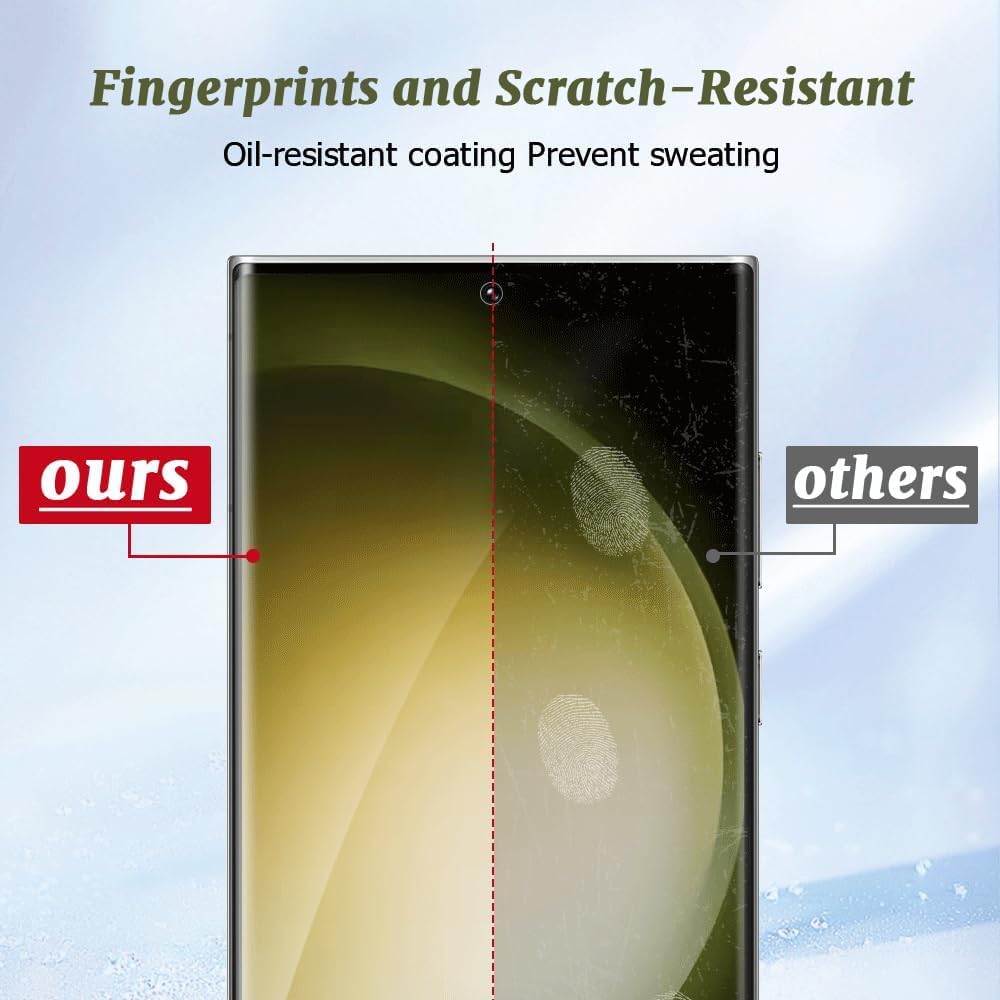 【Easy Installation & Bubble-Free】Easy, no trouble and bubble-free installation that easily fits your device’s screen. Easy to apply and remove. Clear acrylic adhesive won’t leave residue. The anti-fingerprint, oleophobic coating resists smudges to maintain the HD clarity of your display. Fits with most Galaxy S23 Ultra cases on the market and won’t interfere with installation. A perfect fit is guaranteed!