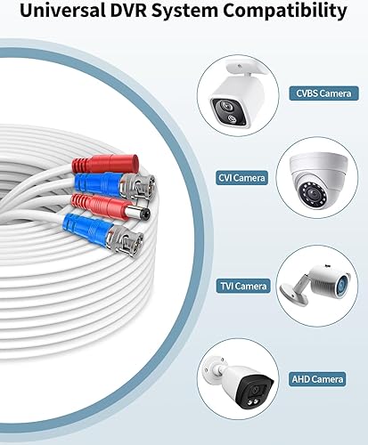 《UNIVERSAL COMPATIBILITY》This security cable extension is compatible with all DVR and CCTV systems, supporting AHD, CVI, and TVI analog HD formats at every resolution (960H/1080p/3MP/5MP) for easy plug-and-play setup.
