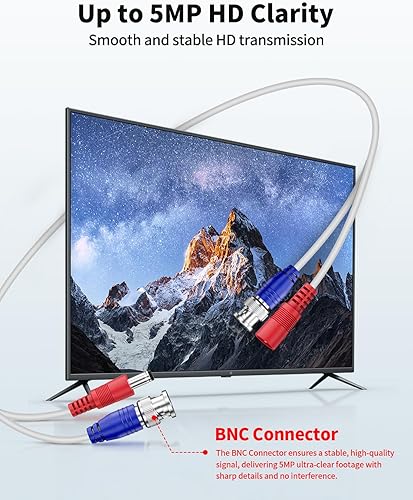 《EASY INSTALLATION》Save hours with the 2-in-1 AHD video power BNC cable—no separate wiring needed! Perfect for setting up a CCTV security system (indoor/outdoor).