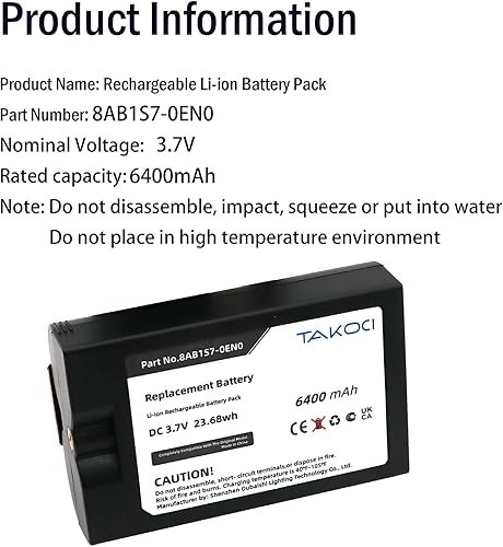 Product Specifications:Voltage:3.7 V;Capacity:6400 mAh / 23.68 Wh;Battery type:Li-ion;Size:70.20 x 44.30 x 24.78mm
