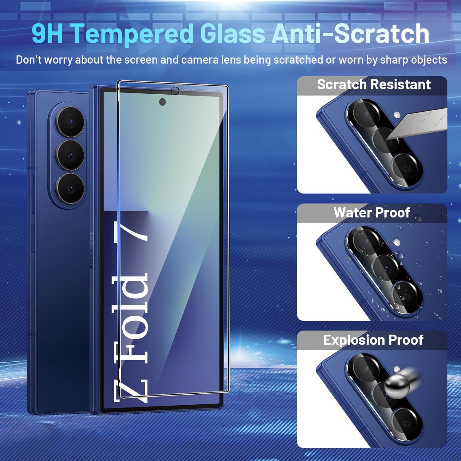 【Ultimate Protection】This package includes 2 Inner TPU Films, 2 Outer Tempered Glass Protectors and 2 Camera Lens Protectors to ensure all-round protection for your Galaxy Z Fold 7