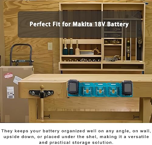 The battery organizer perfect fit for Makita 18v Battery. They keeps your battery organized well on any angle, on wall, upside down, or placed under the shel, making it a versatile and practical storage solution.