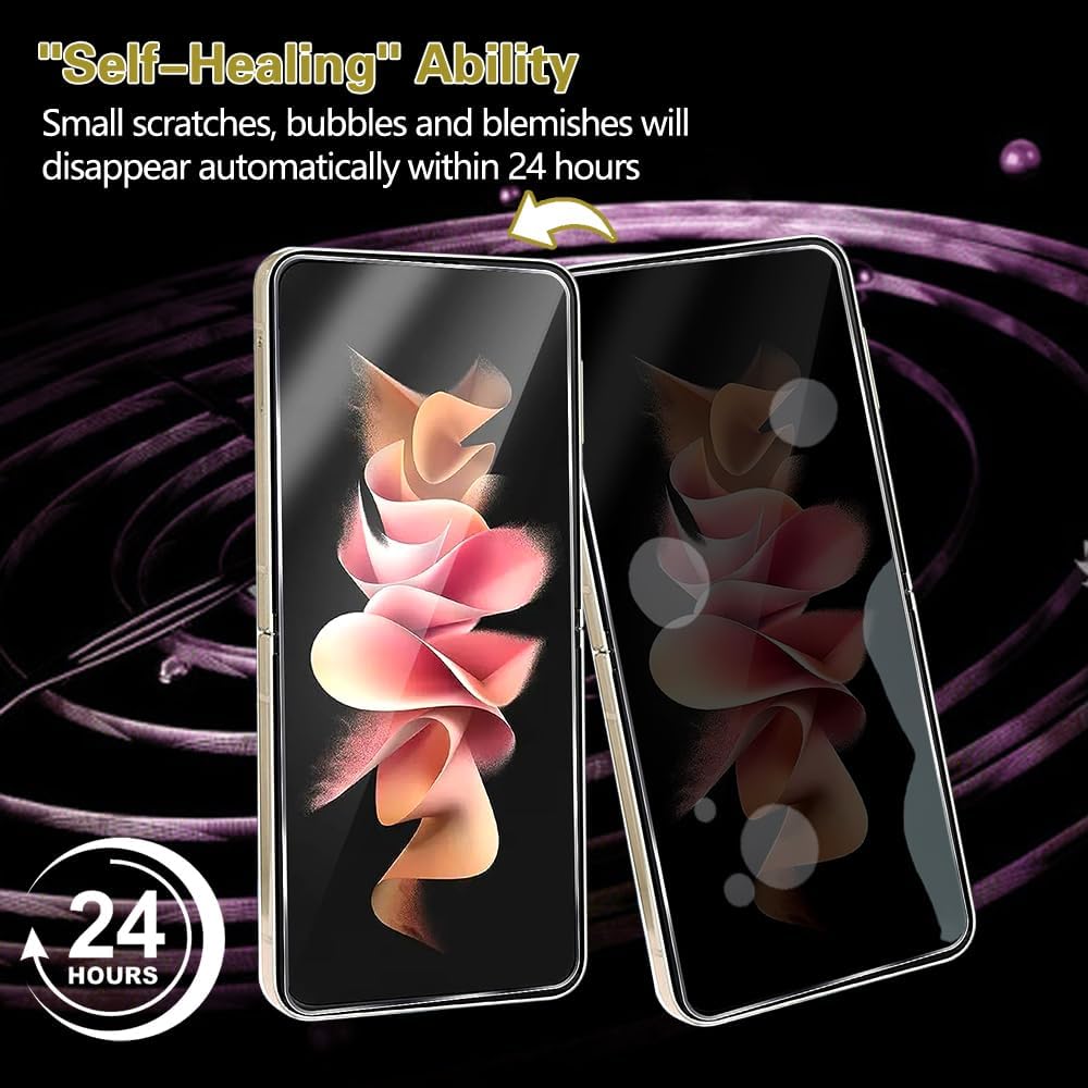 [Scratch Resistant Galaxy Z flip 7 Privacy Screen Protector] Adopting 7-level of hardness tempered glass, the screen protectors consistantly keep your samsung Galaxy Z flip 7 screen away from scratches, unwanted scuffs, friction from keys, knife and other harmful factors. Small scratches will be automatically repaired within 3 seconds, larger scratches can be gently rubbed with your fingers to remove the scratches