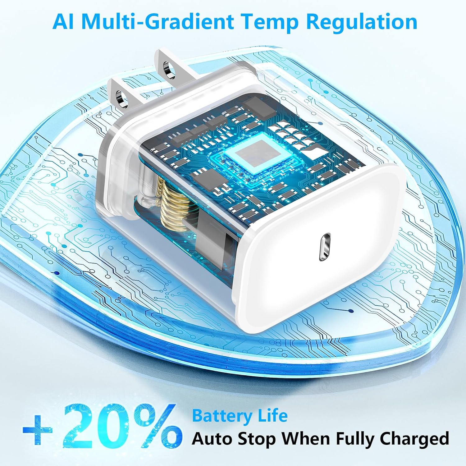 【20W PD 3.0 CORE - 3X FAST CHARGING】 Equipped with the latest PD 3.0 technology, this iPhone 16 fast charger delivers a stable 20W output (up to 25W Max) — 3x faster than the original iPhone chargers. Specifically designed for the iPhone 15/16 series, it charges your device up to 60% in just 30 minutes and fully powers your iPad Pro within 1.5 hours. Perfect for quick top-ups during your morning routine, lunch breaks, or right before you head out—no more waiting around for a sluggish charge!